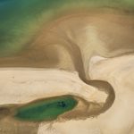 Prise de vue aérienne réalisée en ULM au dessus de la Réserve Naturelle du Banc d’Arguin, à marée basse.