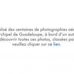 Pour visionner les centaines de photographies aériennes de l’archipel de Guadeloupe, veuillez cliquer ici, vous allez être redirigé vers un autre site.